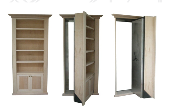 平開式密室門(金庫門外掛裝修柜一體式)金庫門體防護強度高,具有防盜、防火、防彈、防火焰切開、防TNT爆破等功能; 蔭蔽性好,與外裝修渾然一體,入侵者較難發現。